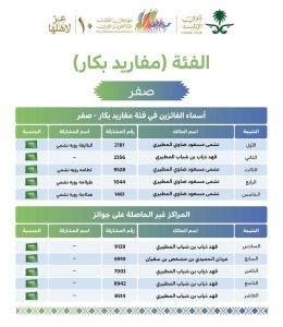 وفي جانب آخر من المنافسات، توّج مالك الإبل نشمي بن مسعود المطيري بالمركز الأول في شوط مفاريد الصفر عبر فرديته المتميزة «النابغة»، ضمن فعاليات النسخة العاشرة من مهرجان الملك عبدالعزيز للإبل، وسط أجواء حماسية ومنافسة قوية بين كبار الملاك، فيما حل فهد بن ذياب المطيري في المركز الثاني.
