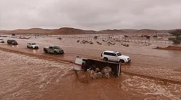 سيول وادي الطوقي تتسبب في انقلاب شاحنة محمّلة بالإبل شمال الرياض