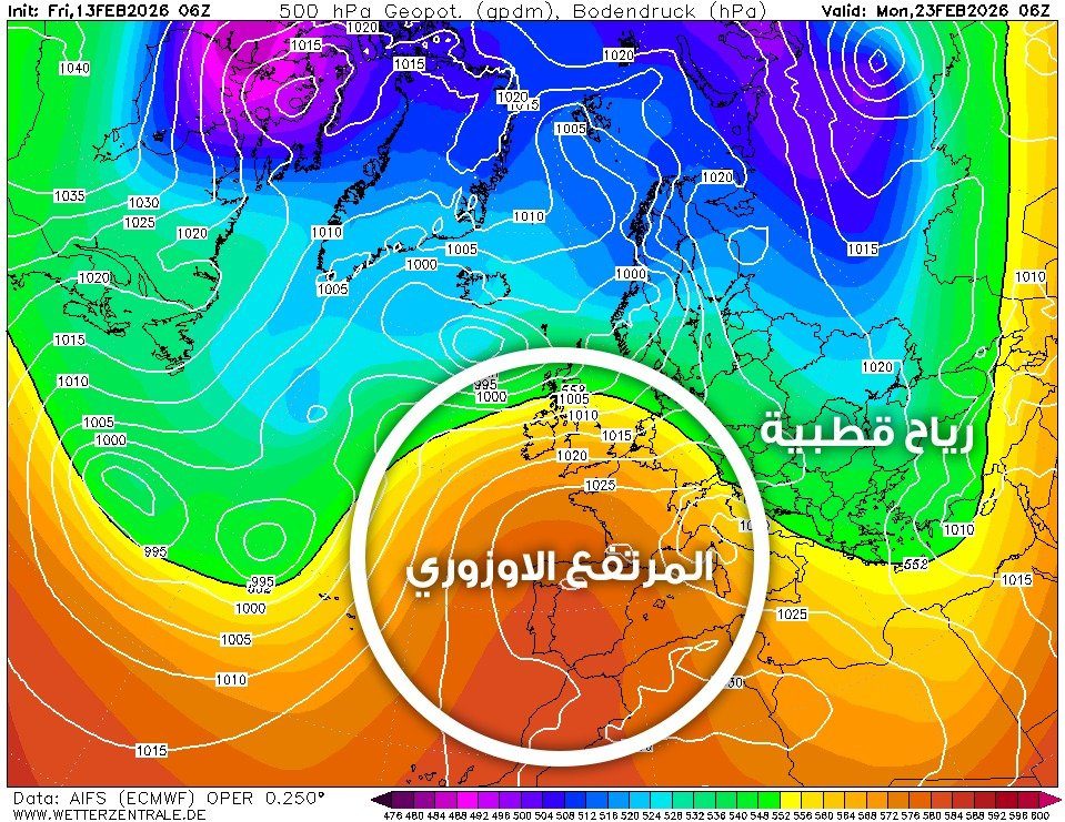 ونوّه إلى أن الثابت الأبرز حتى الآن في مخرجات النماذج هو تشكّل المرتفع الجوي الأزوري، الذي يُعد عاملاً مهماً يشير إلى انخفاض نشاط عواصف الأطلسي وبداية توجّه الكتل الباردة نحو شرق البحر الأبيض المتوسط، لافتاً إلى أن المرتفع الأزوري يُعد بمثابة “دفة توجيه” للنزولات الباردة نحو شرق أوروبا وشرق المتوسط.