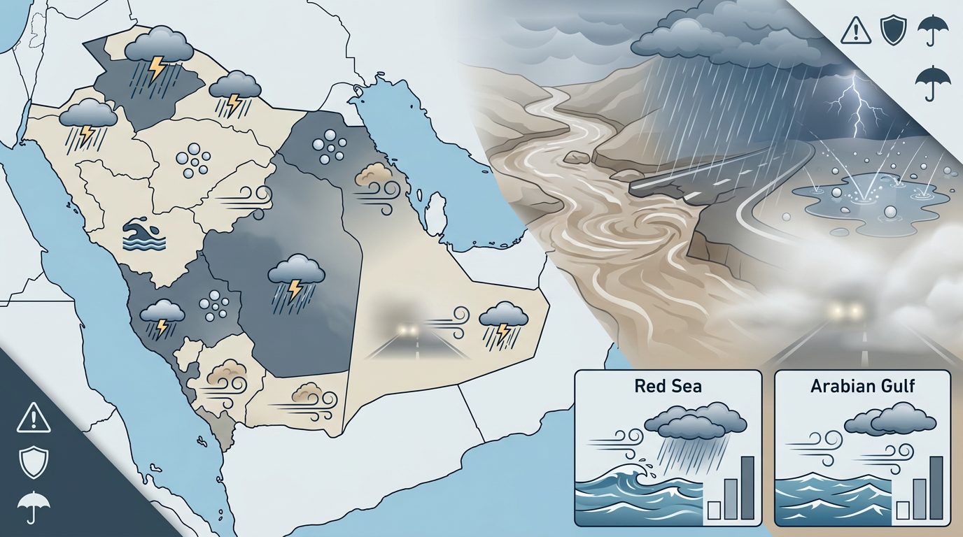 أمطار رعدية غزيرة وسيول متوقعة على 10 مناطق مع تحذيرات من شبه انعدام الرؤية