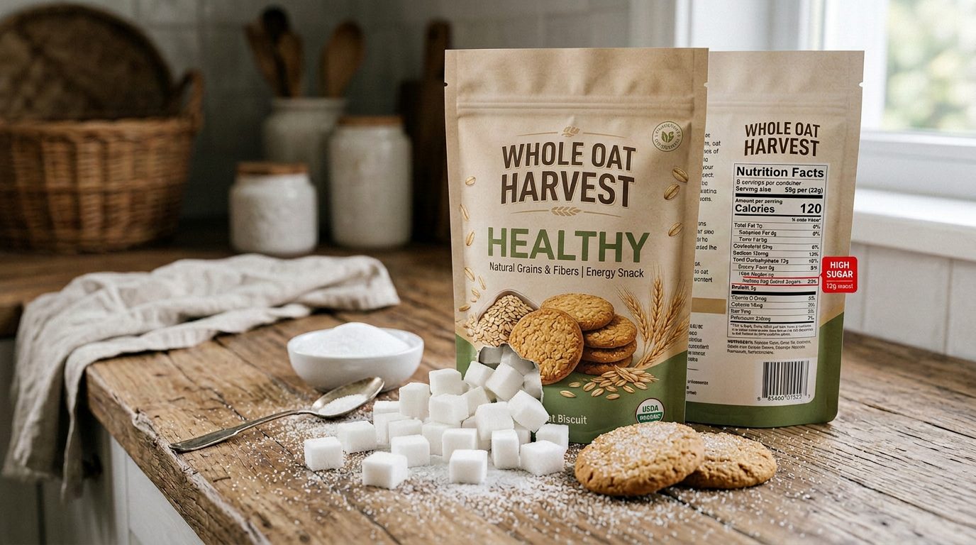 تُظهر بعض أنواع البسكويت التي تُسوّق على أنها “صحية” أو “لايت” صورة قد لا تعكس محتواها الكامل، رغم تقديمها بوصفها خيارًا مناسبًا للأنظمة الغذائية الصحية.